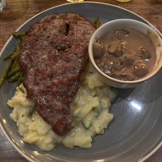 Got to finally see what this schnitzel was about for my Christmas dinner. In Germany, Christmas Eve is a much bigger deal so it was easy enough to get reservations on Christmas Day. I ended up having their gluten free version of Jägerschnitzel with a cucumber potato salad, string beans and mushroom sauce. For dessert, I tried their chocolate moose! Everything was so delicious and the staff was incredibly kind. Just wasn't a fan of their gluten free beer...